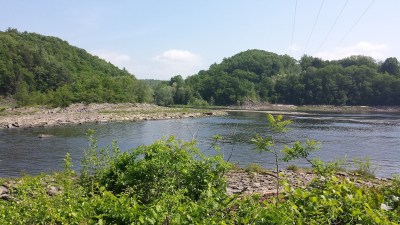 | The view across the Connecticut River. This is the likely area of the fishing camp. |