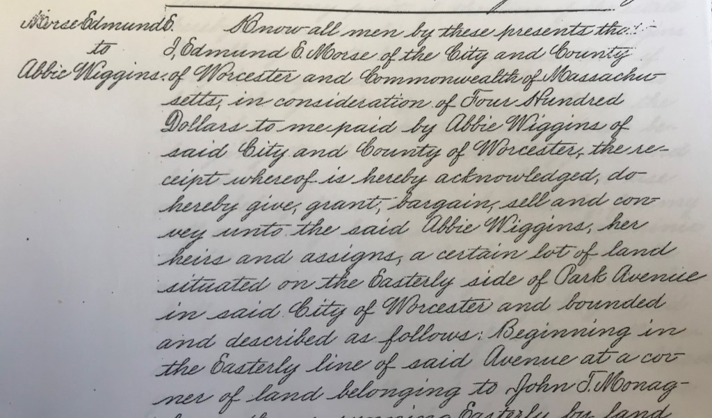 For a single Black woman of today, buying a home on her own can be a daunting experience and unfortunately, not a common one. In 1884, it must have been near miraculous. Yet our ancestresses here in Worcester did it and did it often. The photo of the deed above is just one of the properties purchased by Abigail Hardy Wiggins Bostic, 2nd wife of my 3rd great-grandfather, William Bostic.