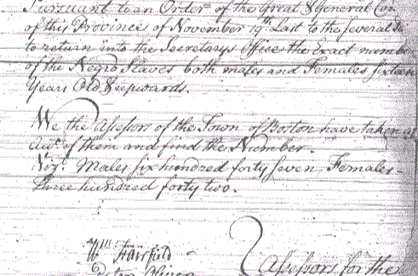 1754 Slave Census in Massachusetts