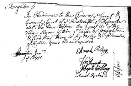 1754 Slave Census in Massachusetts